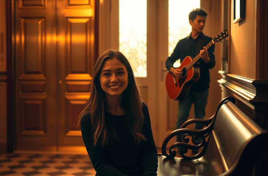 Она вышла из подъезда, села на лавочку. Сумку поставила рядом. Подняла глаза — в его окне горел свет. Обычный, но живой. А через несколько минут зазвучала гитара — тихая, тёплая, будто кто-то открыл окно и отпустил музыку в ночь.